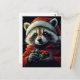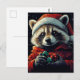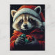 AI generated art of an adorable racoon in a Santa suit holding red and green gemstones