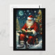 Elegant illustration Christmas holiday design featuring a Santa Claus reading book with a Christmas tree background.