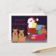 The Santa & Reindeer Postcard makes a great way to send holiday greetings! The retro design features Santa with two reindeer, along with his sleigh filled with packages. The text reads, "Merry Christmas." Customise the text as desired.