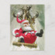 Santa & Reindeer Sleigh Riding Modern Vintage Holiday Postcard