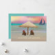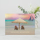 Original illustration of Santa and reindeer on a tropical beach relaxing and watching the sunset. ©Becky Nimoy 2021
