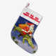 Santa Claus is riding on an alligator. Quite a sight. Santa, being quite resourceful, has trained alligators for Florida deliveries. Reindeer don't do well in the Florida climate, so he has taught gators to fly. Santa Claus is an amazing jolly old fellow, and this is how we do Christmas in Florida. This unique Santa stocking will be something Floridians and northern visitors alike will enjoy. Design from an original watercolor by Mary Hamilton.
