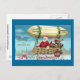 Santa Riding in Blimp Vintage Xmas Holiday Postcard