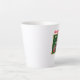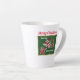 This Latte mug has Santa Claus riding a red and white train with peppermint candy wheels carry letters and candy canes on a green background with the text: Choo, Choo Here Comes Santa with a gold border. Customise the Merry Christmas text at the top with the template.