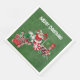 Santa Riding Red White Christmas Train Dark Green Napkin