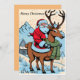 Spread festive cheer with our Santa Riding Reindeer Customisable Holiday Card. This whimsical and heartwarming design features jolly old Saint Nick perched atop his trusty reindeer, soaring through a starry winter night. Personalise your message and add a special touch to your season's greetings with this enchanting card.