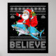 Santa Riding Shark Ugly Christmas Sweater Believe Poster