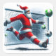 Santa Scores a Goal While Playing Soccer in Winter Square Sticker