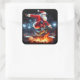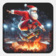 Santa Skateboards Over Fiery Ramp Square Sticker