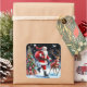 Santa Claus joyfully skates on ice alongside a friendly reindeer. In the background, a beautifully lit Christmas tree displays colourful ornaments, while wrapped presents sit nearby, celebrating the festive spirit of the season.