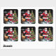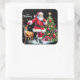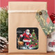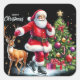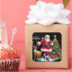 Santa Claus joyfully skates alongside a reindeer, creating a festive atmosphere. The vibrant scene features a decorated Christmas tree adorned with colourful ornaments and gifts, embodying the spirit of the holiday season.