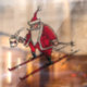 Santa Skiing lg see-thru window cling back stick