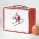 Santa Skiing lunchboxes are for skiers, carpoolers, truckers, coffee drinkers, hot chocolate drinkers, students, and people who spread good cheer during the holiday season. Santa Skiing is Steamy Raimon original cartoon art.