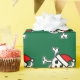 Santa skull wrapping paper for Christmas. Funny Xmas giftwrap with skull wearing a red Santa Claus hat. Custom background colour.
