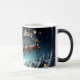 Bring the magic of Christmas to life with this festive mug design featuring Santa Claus in his sleigh pulled by reindeer, flying across a starry night sky above snowy rooftop. The elegant "Merry Christmas" text in gold cursive adds a special touch of holiday cheer. Perfect for creating custom mugs, this vibrant design is ideal for hot cocoa, coffee, or tea during the festive season. A great gift idea for family, friends, or holiday celebrations!