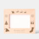 Here's a cute etched frame for your Christmas family photograph. Santa Claus drives his sleigh with three reindeer at the top of the frame. Along each side are Holiday symbols, including snowflakes, a Christmas tree, a gift package, a Santa hat, and a stocking. At the bottom are two text fields for your custom text. All the text templates can be easily changed to anything you'd like.