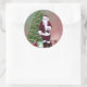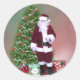 Enhance your Christmas messages with this traditional Santa standing by a decorated tree after he has left his packages.