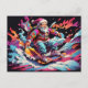 Santa snowboarding Psychedelic colours Holiday Postcard