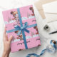 Santa & snowflakes on a pink background Christmas Wrapping Paper