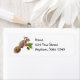 A little squirrel wears a jaunty Santa cap and holds a sprig of holly on these holiday return address stickers. Just type in your own name and address.