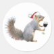A squirrel wearing a Santa hat and holding up a glass of red wine on these fun holiday stickers.
