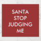 The fun saying, SANTA STOP JUDGING ME, accents this red beer label, making it perfect for gift giving or parties during the Holiday Season.