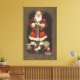 Santa Stuffing Stocking with Nutcracker Canvas Print