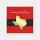 A big belly requires a big belt and a big - that is, Texas-sized - buckle to hold it all together. This somewhat abstract design shows the red of Santa's coat and black belt with gold holes. The buckle is a dimensional gold shape of Texas. Handwritten script across the top wishes the recipient a merry Christmas with your family name below the belt. Put a family photo and the names of your family members on the back.
