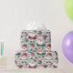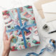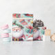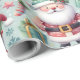 A delightful assortment of Christmas wrapping paper showcases cheerful Santas adorned in colourful outfits, surrounded by beautifully wrapped gifts and playful decorations.