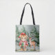 Santa Tiger and a Deer Pine Tree Christmas Tote Bag
