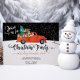 Celebrate the Holidays with this cute Santa delivering gifts in his red orange truck, with Christmas tree ploughing through the snow. Pretty script typography. Perfect for your next Christmas Party!
