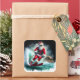 Santa Claus enjoys a lively afternoon skiing on water, wearing sunglasses and his traditional red outfit. The backdrop features a charming lakeside cabin, highlighting the festive spirit of the holiday season in a warm, sunny setting.