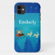 Cute and whimsical Santa Winter Scene Christmas Case-mate iPhone 4 Barely There ID Case featuring Santa Claus and his reindeer passing through a wintry blue forest on a starry night. This fun Christmas themed iPhone skin allows you to protect your phone with a bit of holiday flair! Easy to customise, simply add the personalised text of your choosing to this design. Click on the "Customise It" button to find more personalisation options.