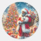 Santa with Christmas Tree & Gifts African American Classic Round Sticker