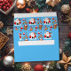 This festive Christmas envelope features Santa Claus and Mrs. Claus surrounded by their favourite woodland friends in a snowy forest scene. The joyful pattern includes Santa’s red-nosed reindeer, a mama and baby fox wearing antlers and a Santa hat, a chipmunk holding hot cocoa, and a teddy bear wrapped in Christmas lights wearing his own Santa hat. Snowflakes dance through the background, adding an extra sparkle of holiday magic. Perfect for sending cheerful Christmas cards or invitations, these envelopes are a delight for families, teachers, and children—especially for school parties, classroom exchanges, or festive family mailings full of seasonal spirit.
