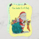 This original christmas invitation has a picture of Santa Claus with his sack filled with gifts all wrapped and ready for the Christmas day delivery, you can see a yellow teddy with a red bow and a blue bunny just poking out of the top of the green sack. Father christmas is holding a colourful red and gold striped christmas stocking that has a candy stick and smaller gifts in it, he is also holding a small wrapped gift in his hand The cute illustration is produced from an original water colour painting that I created a few years ago. The colourful and traditional festive image looks great on this cute candy jar and I'm sure it will bring a lot of smiles and cheer during the festive period. I think this original christmas invitation makes a great send to anyone you want to invite to your party during the Christmas holiday season. this is a customisable christmas invitation, you can personalise it with your own text.