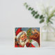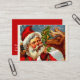 A charming vintage Christmas business card featuring Santa Claus feeding one of his reindeer with a candy cane.