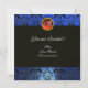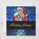 SANTA WITH VIOLIN ,BLUE BLACK DAMASK MONOGRAM Ruby Invitation