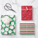 These classic wrapping paper with happy santas on green, red with white retro snowflakes and red,green and white polka dot stripes would look fabulous on your gifts! They're festive and fun. Get enough to wrap all your gifts.