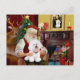 Santa at home with his Bichon Frise, relaxing in front of the fire before the big night. (Notice Mona Lisa over the mantle.)