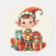 Santa's Christmas Elf with Gifts Classic Round Sticker