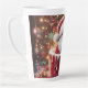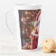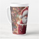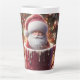 A charming and whimsical image depicting a miniature Santa Claus nestled inside a giant, steaming mug of hot cocoa. The mug is adorned with delicate snowflakes and dripping with creamy goodness. Santa, with his rosy cheeks and twinkling eyes, peeks out from the warmth, surrounded by the soft glow of Christmas lights and festive decorations.