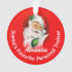 Beautiful keepsake Christmas Holiday ornament with vintage image Santa Claus winking and holding his list of good children, with a cheerful smile. Add your name and occupation to create a one of a kind gift for co-worker, friend or associate.