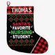 Personalised Santa's Favourite Nursing Student Ugly Christmas Red Plaid Stocking. Merry Christmas!