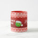Personalise this Christmas mug for your favourite pickleball player. A background of red pickleballs with a red glitter band across the middle says Santa's Favourite Pickleballer and a pickleball player's name beneath that and a cute little green pickleball wearing a Santa hat in the middle. Colourful pickleball-themed Christmas mug gift for yourself, your pickleball-loving mum, dad, uncle, aunt, brother, sister, neighbour, grandpa, grandma, husband, wife, friend, or work colleague who won't stop talking about pickleball.