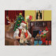 Santa at home with his Wire Fox Terrier, relaxing in front of the fire before the big day. Notice Mona Lisa over the mantle holding the same dog.