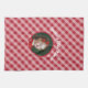 Santa's Little Baker is a cute kitchen towel in a chequered gingham fabric in red and pink. Including a custom photo, original demo photo by Marina Abrosimova on Unsplash. Replace with your own!