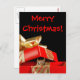 little chipmunk pops up out of a wrapped Christmas package ready to say "Merry Christmas!" He's also an official Santa's Little Helper!