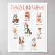Funny Santa's little helpers Christmas Holiday Poster. Features a variety of watercolor dogs dressed up with antlers, hats and winter clothing for the holidays with reindeer or reindog names. Great for the dog lover!