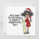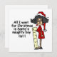 Funny holiday T-shirts, mugs, cards, stickers, buttons, bags, keychains, ornaments, and more sure to make anyone laugh features a female in a Santa hat and red dress with a long list saying "All I want for Christmas is Santa's naughty boy list!".